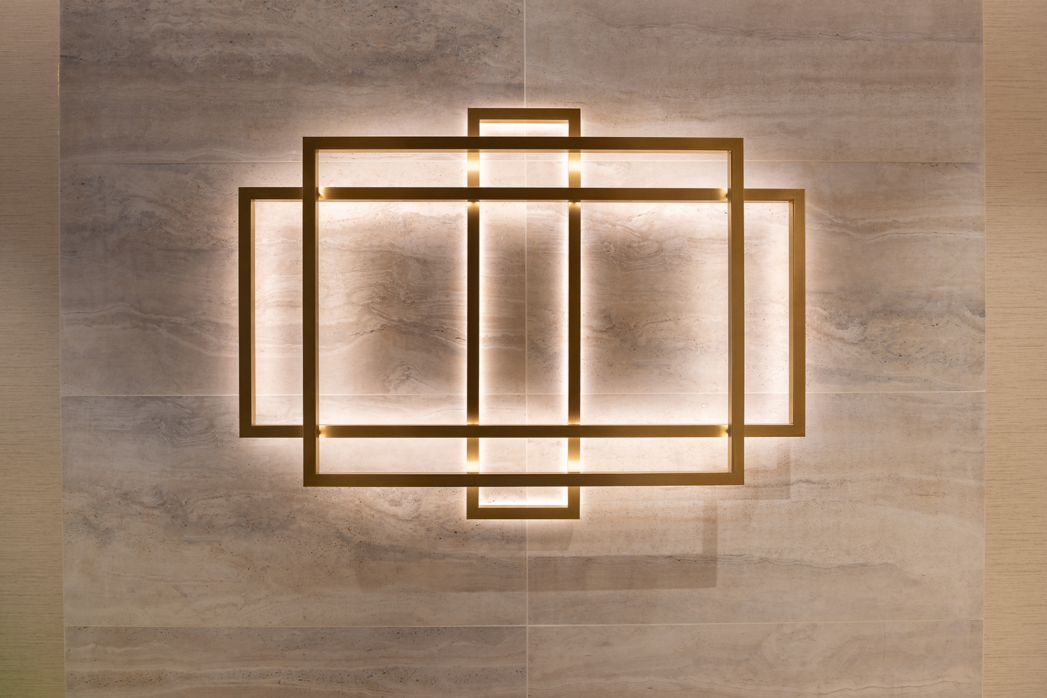 Podobną rolę pełnią zaprojektowane na zamówienie elementy sztuki użytkowej jak ręcznie robione drzwi, designerskie żyrandole czy też dywany z powtarzającym się monogramem inwestycji.