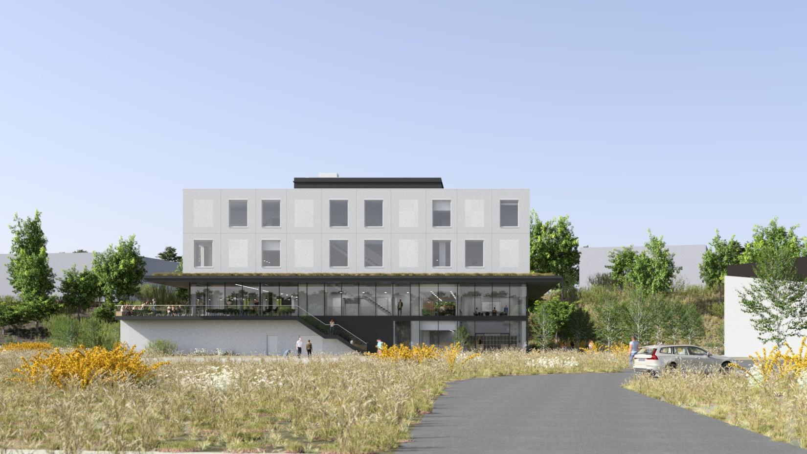 The grid-based design covers about 5,000m² and houses around a central auditorium various training rooms for both traditional knowledge transfer and virtual reality training, a restaurant, workplaces and staff rooms. Surrounding training areas will be laid out for outdoor training and will be connected to the existing training hall. The landscape will be restored according to the same "re-nature" principle as the neighbouring LA BIOMISTA.
