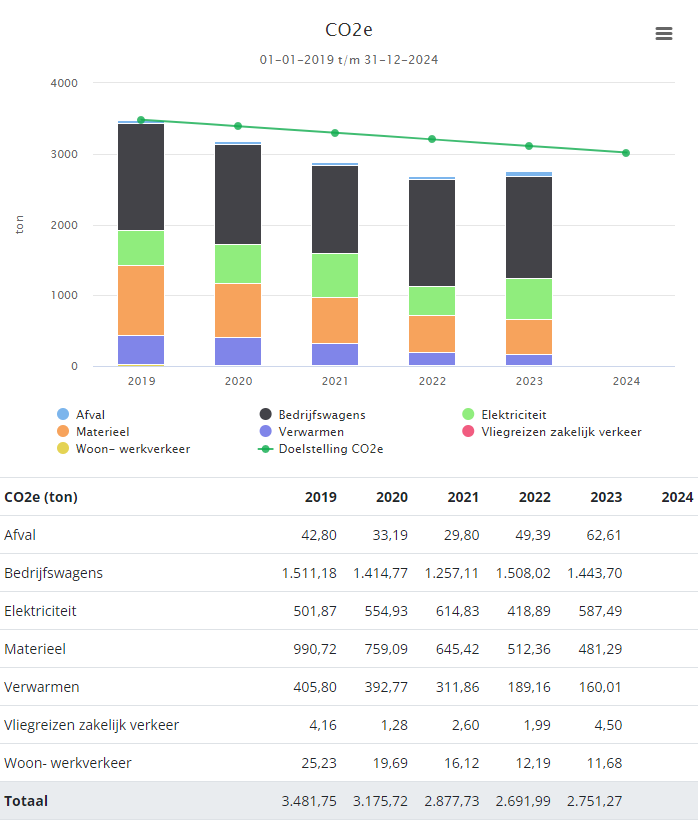 In our ongoing efforts to reduce CO2 emissions, we are pleased to share our analysis and trends observed in various aspects of our operations. Our initial goal was an absolute CO2 emission of 2,615 tons by 2025, representing a 24% decrease compared to 2019. Currently, we are at 2,751 tons, with two years remaining to reduce it by 136 tons.
