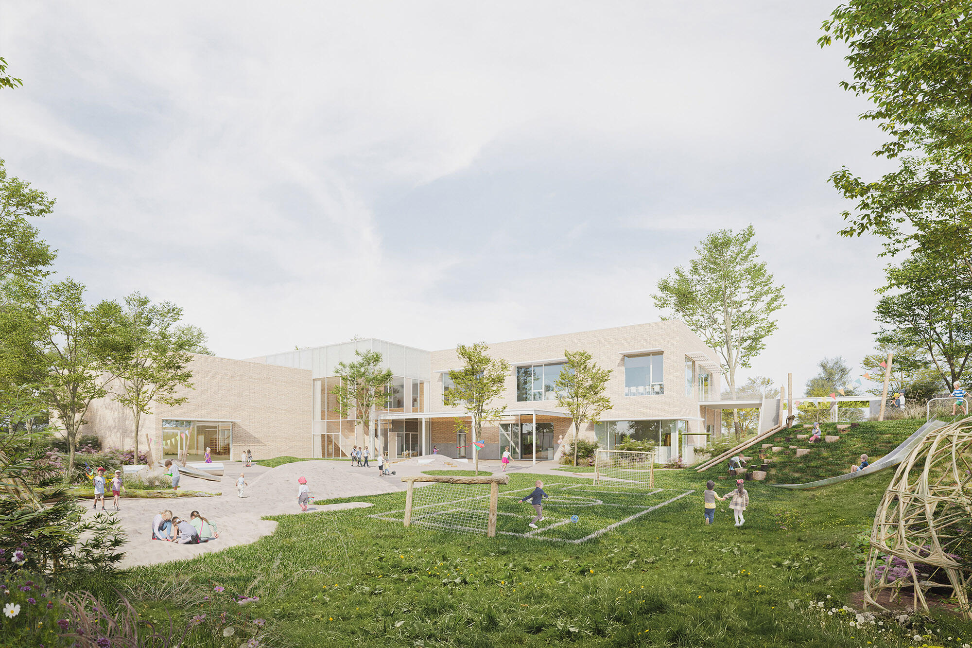 Two playgrounds are planned — one with play sand, the other with a sports field and amphitheatre — as well as a ‘kiss & ride’ drop-off zone and covered bicycle parking.