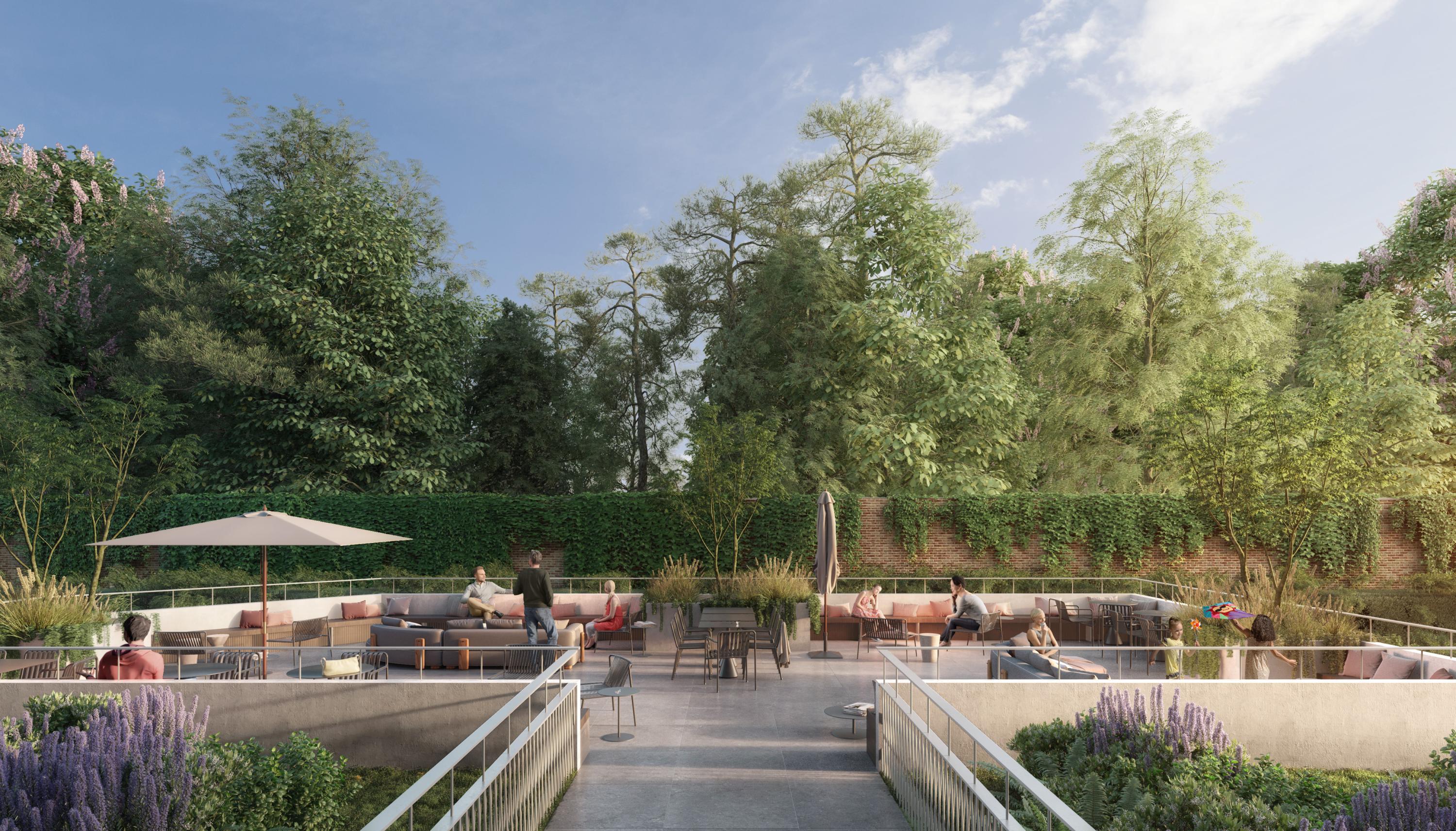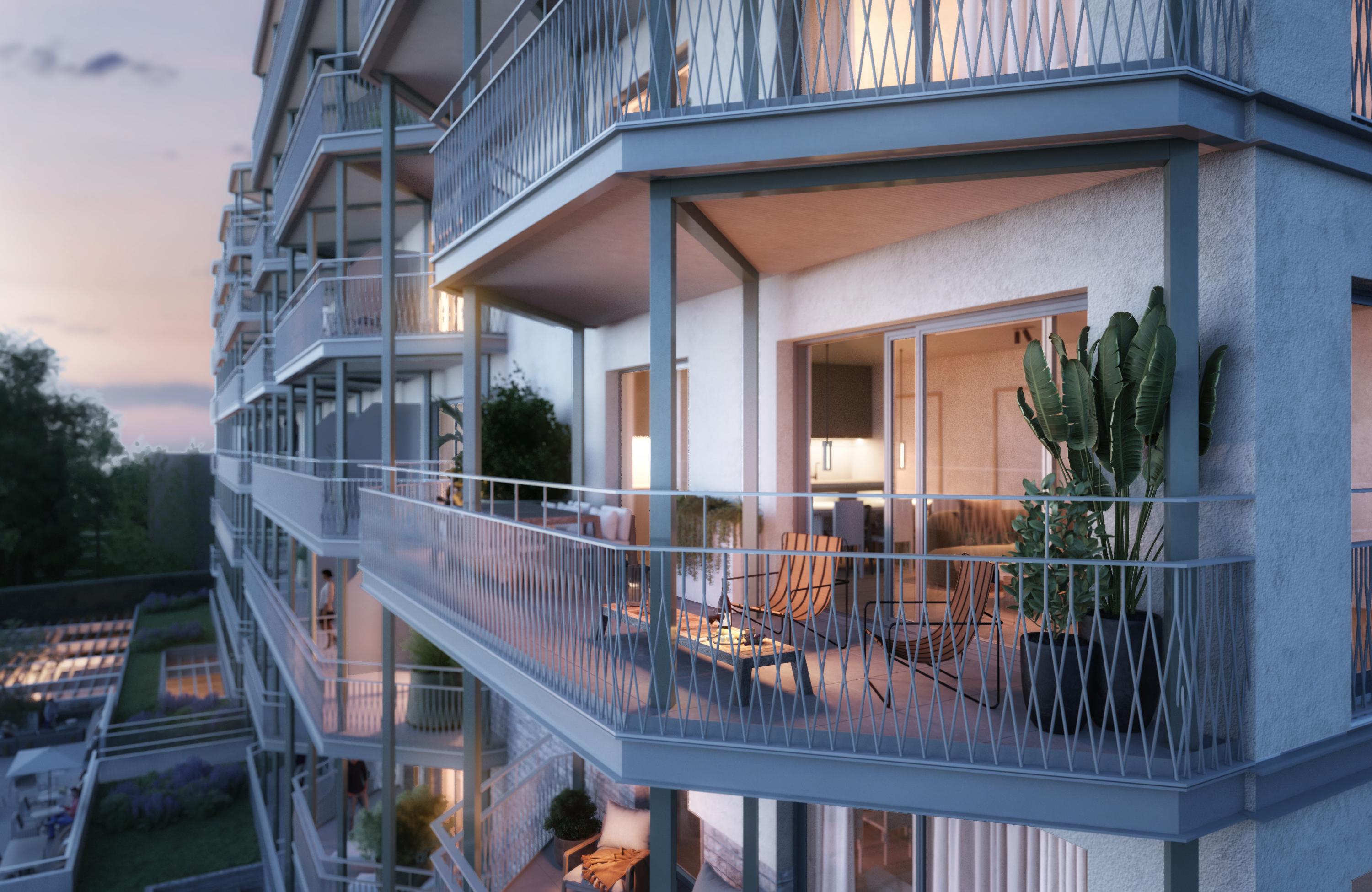 The complex will have large balconies or terraces, a large communal terrace with a view of a mini forest, a large central laundry, 182 square meter bike storage and 87 parking spaces.