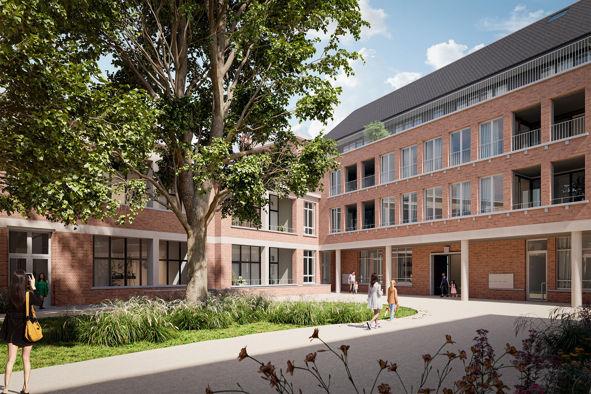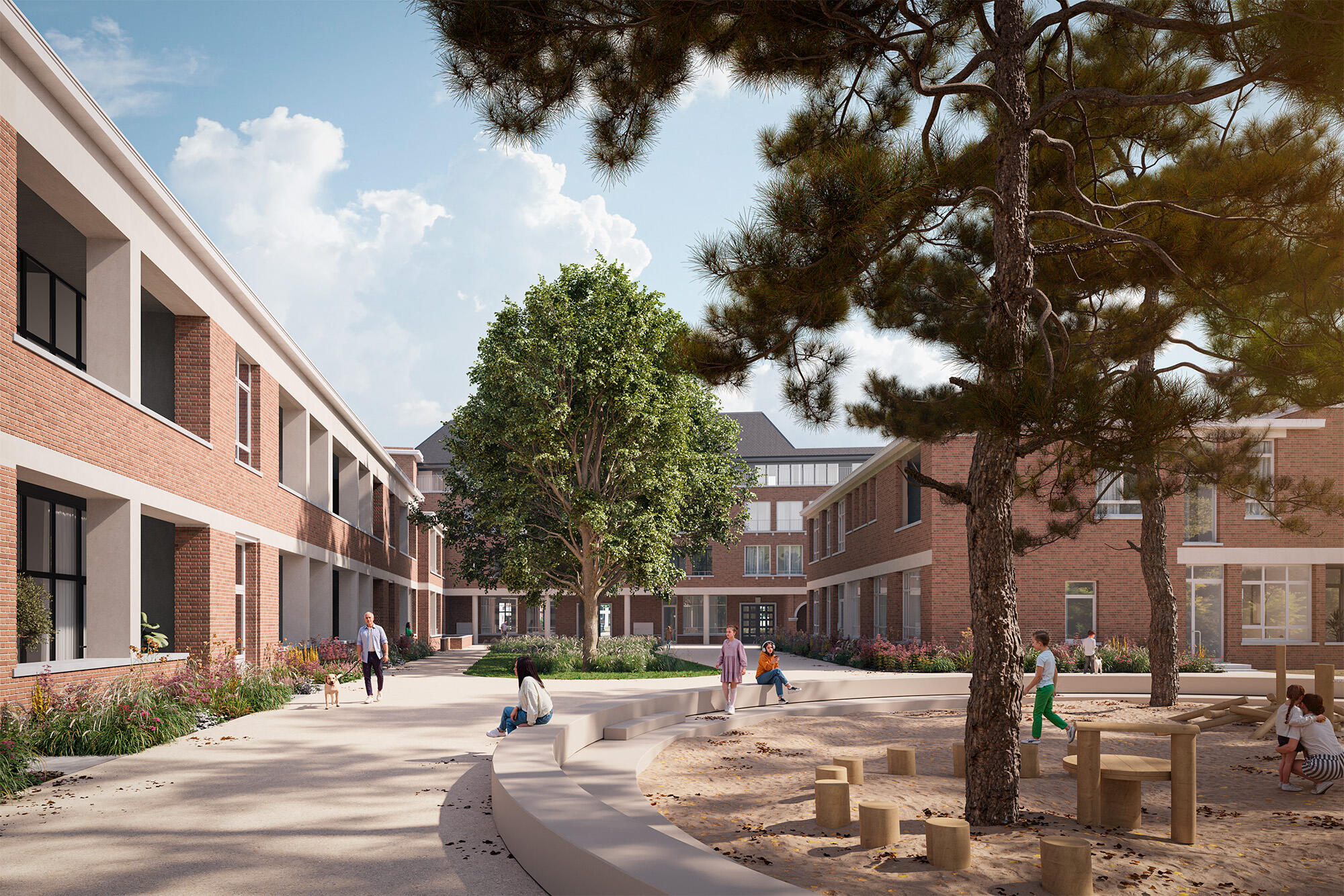 On the old site of the Sint-Lutgardis School in Mortsel, Ciril is developing Stadsterras: a beautiful new place to live between the park and the city. Adjacent to the large ‘Oude God’ park, a green, spacious and architectural residential area is taking shape with seven buildings, each with its own design, atmosphere and character. Stadsterras thus forms the final piece of the revaluation of this popular neighbourhood.