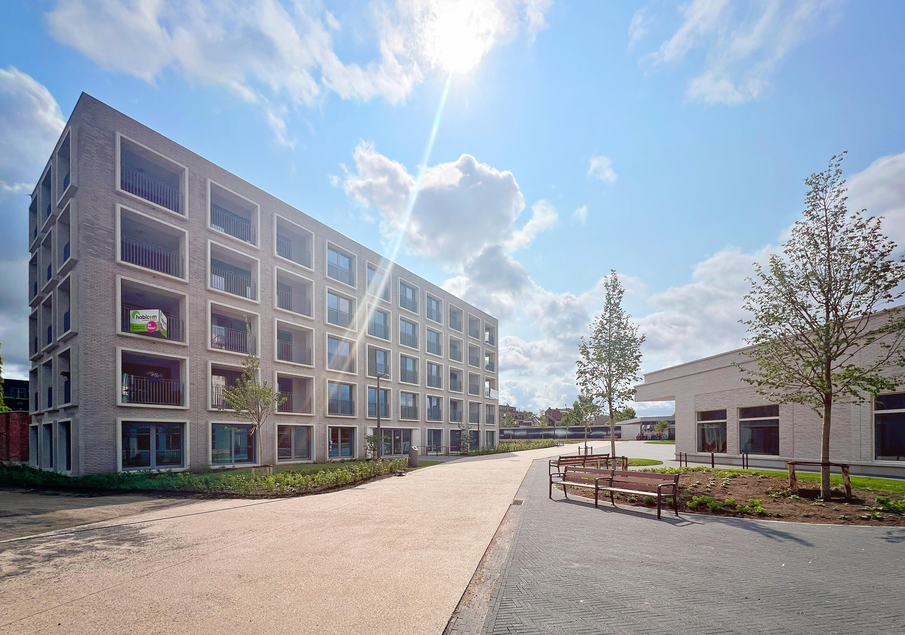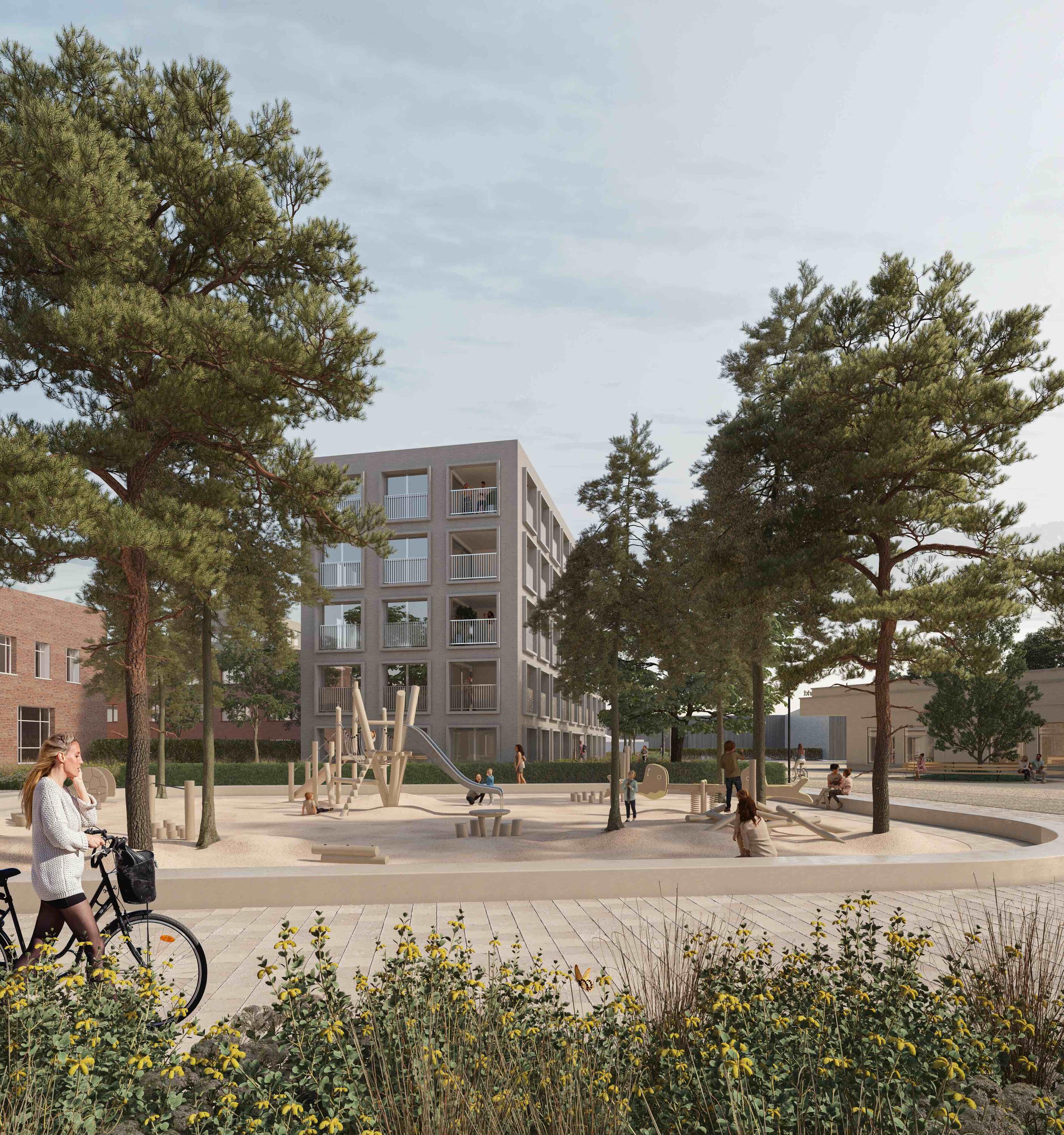 Together, the 6 new buildings and renovated Sint-Lutgardis School will provide 131 residential units, a school building and commercial spaces on the ground floor. The spacious homes range from 1 to 3 bedrooms and have large terraces to fully enjoy the surrounding greenery. In the first phase, buildings Gefion, Mimir and Iduna are launched.