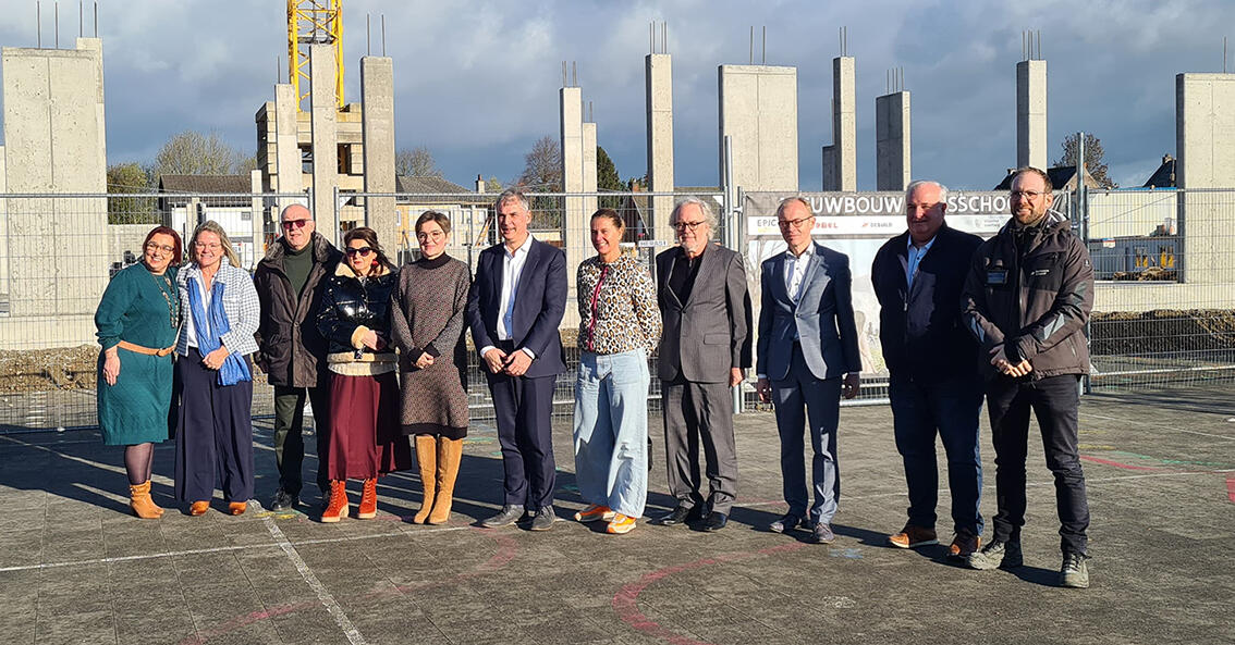Les premiers travaux préparatoires sur le site ont déjà commencé, mais cette pose symbolique marque officiellement le coup d’envoi de la construction. Sur le site de la Kattestraat à Haaltert, l’école De Brug, actuellement située à Alost, sera regroupée avec De Krekel, déjà implantée sur le domaine de 2.700 m².
