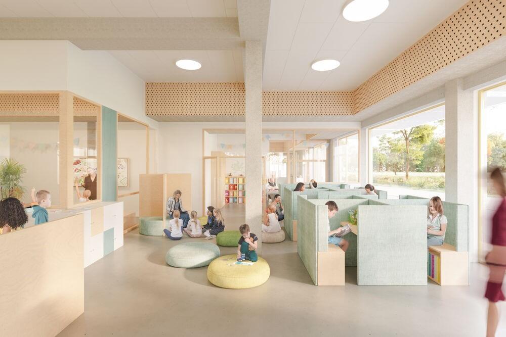 « Nous voulons créer une école inclusive où chaque enfant, quels que soient son origine ou ses défis, peut pleinement vivre et apprendre ensemble. Cette vision se reflète clairement dans le plan du nouveau campus. Il n’y aura pas de classes traditionnelles, mais des îlots d’apprentissage dans de vastes espaces pédagogiques. Le caractère vert du site traverse le projet comme un fil conducteur. Nous intégrons la nature à travers des espaces d’apprentissage intérieurs et extérieurs, en mettant l’accent sur un enseignement innovant, basé sur l’apprentissage par la découverte et une approche différenciée avec des défis pour chaque élève. Les enfants de l’enseignement ordinaire apprendront et vivront ensemble avec ceux de l’enseignement spécialisé (type de base), en utilisant l’inclusion comme levier pour une éducation de qualité », - Els Schockaert, directrice générale du GO! Scholengroep Dender