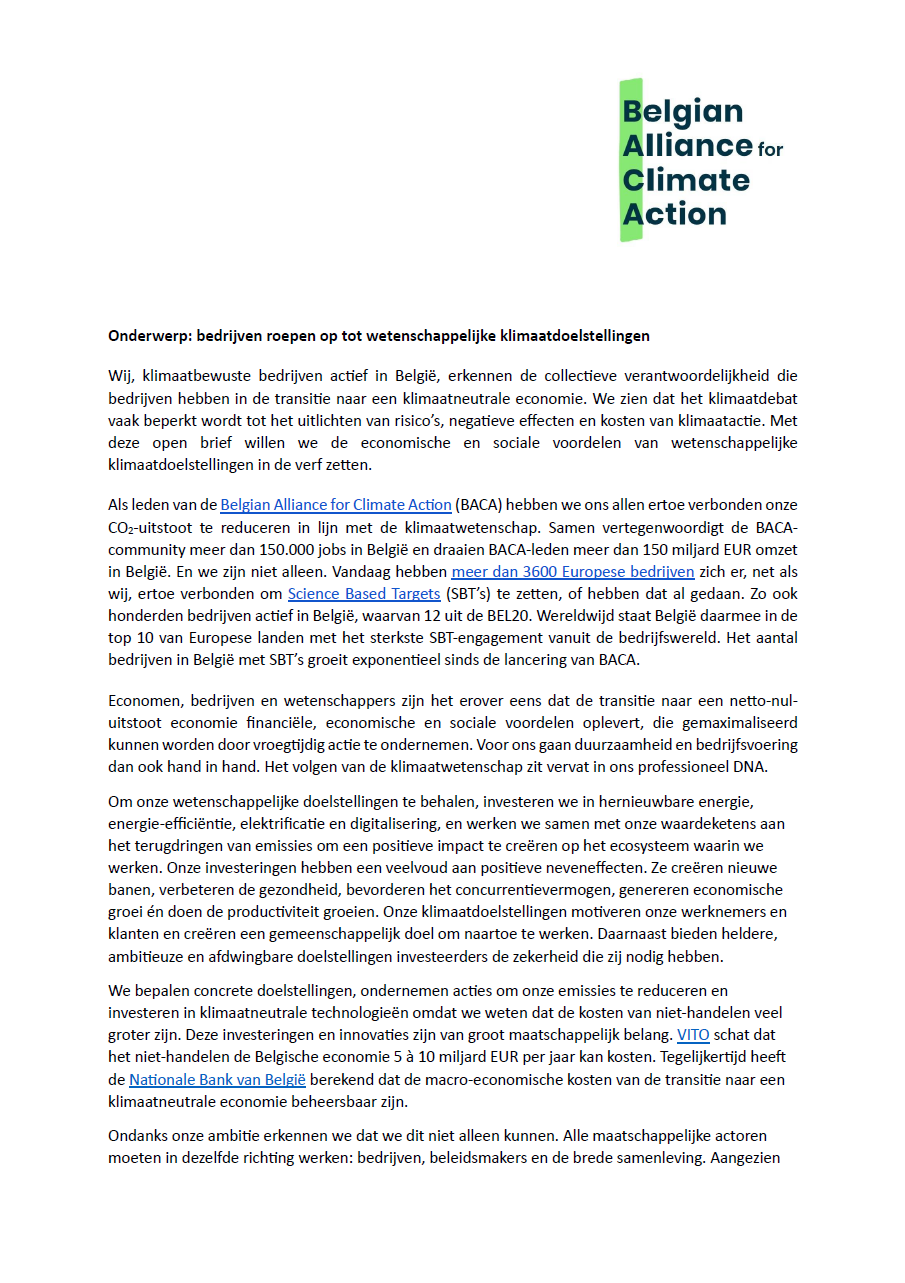 In een opmerkelijke blijk van eensgezindheid heeft Ciril samen met 31 andere invloedrijke bedrijven, allen lid van de Belgian Alliance for Climate Action (BACA), een open brief ondertekend waarin de beleidsmakers worden aangespoord tot een doortastend en ambitieus klimaat beleid.