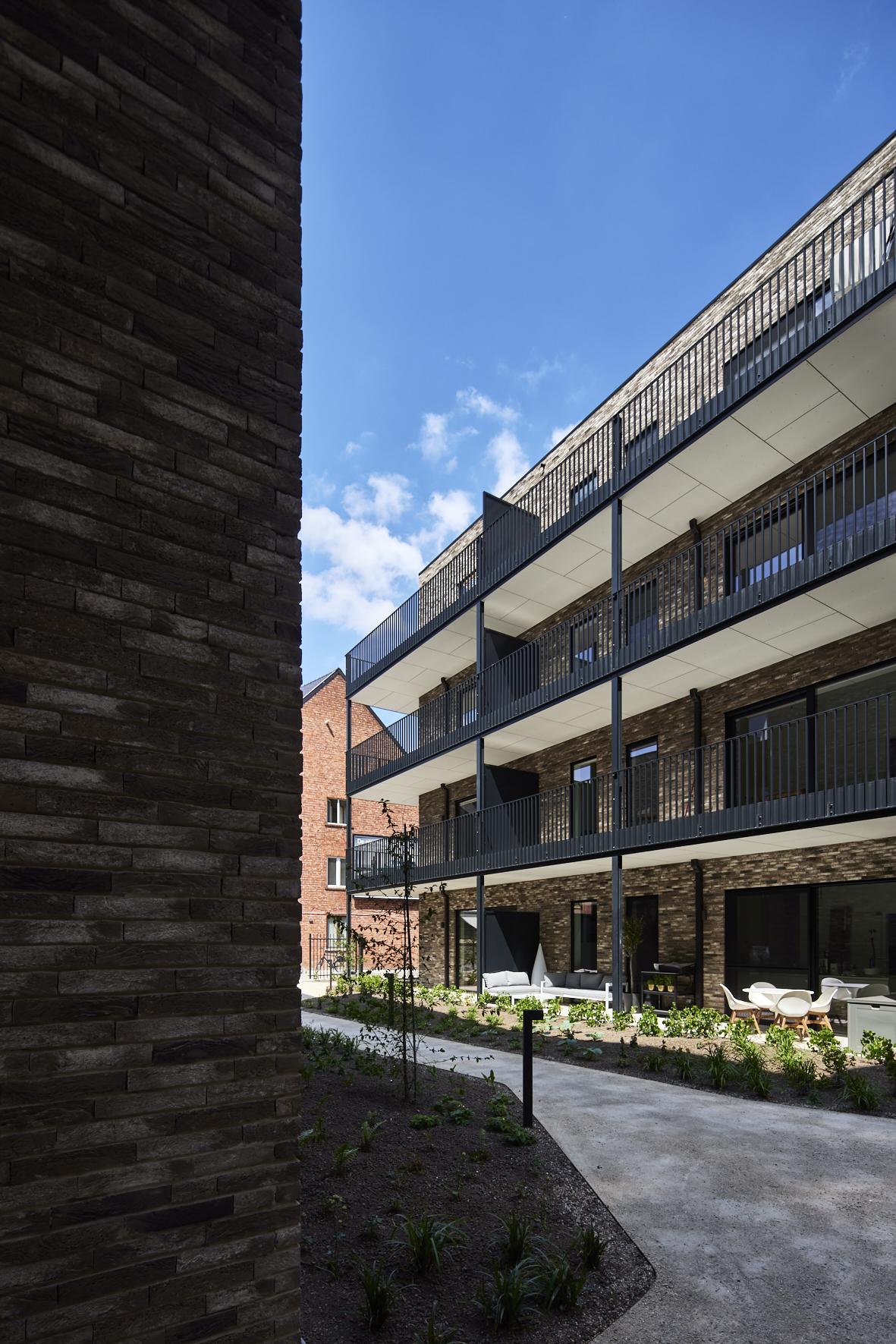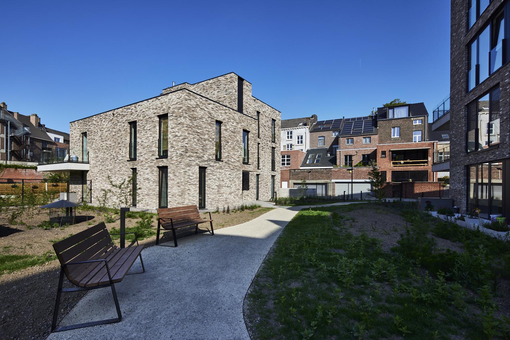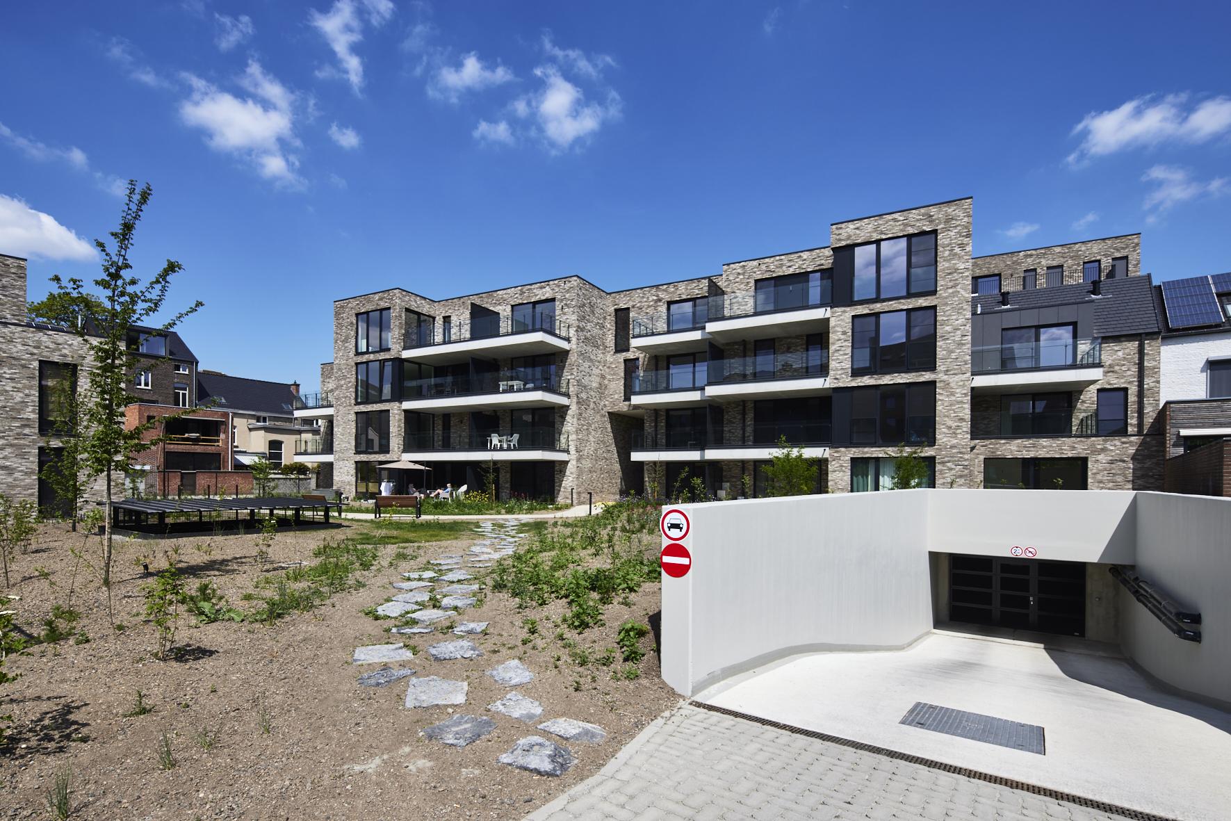 Opvallend is dat de site bijna volledig onderkelderd werd. Op niveau -1 is een ondergrondse parking met 91 autoparkeerplaatsen en 118 fietsstalplaatsen gerealiseerd. De bestaande parkeerkelder van het voormalige kantoorgebouw werd uitgebreid met een nieuw gedeelte om het bovenliggende binnengebied autovrij te kunnen houden.