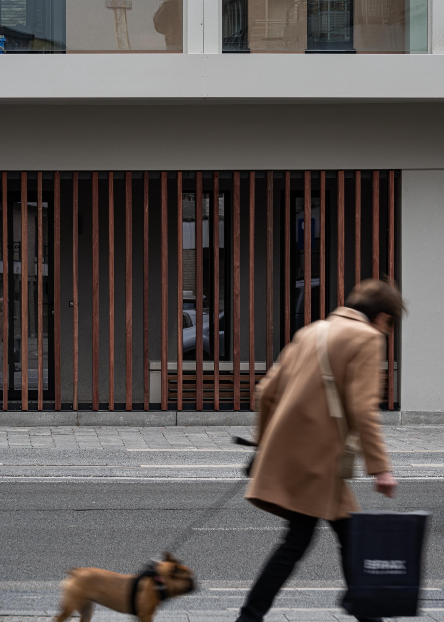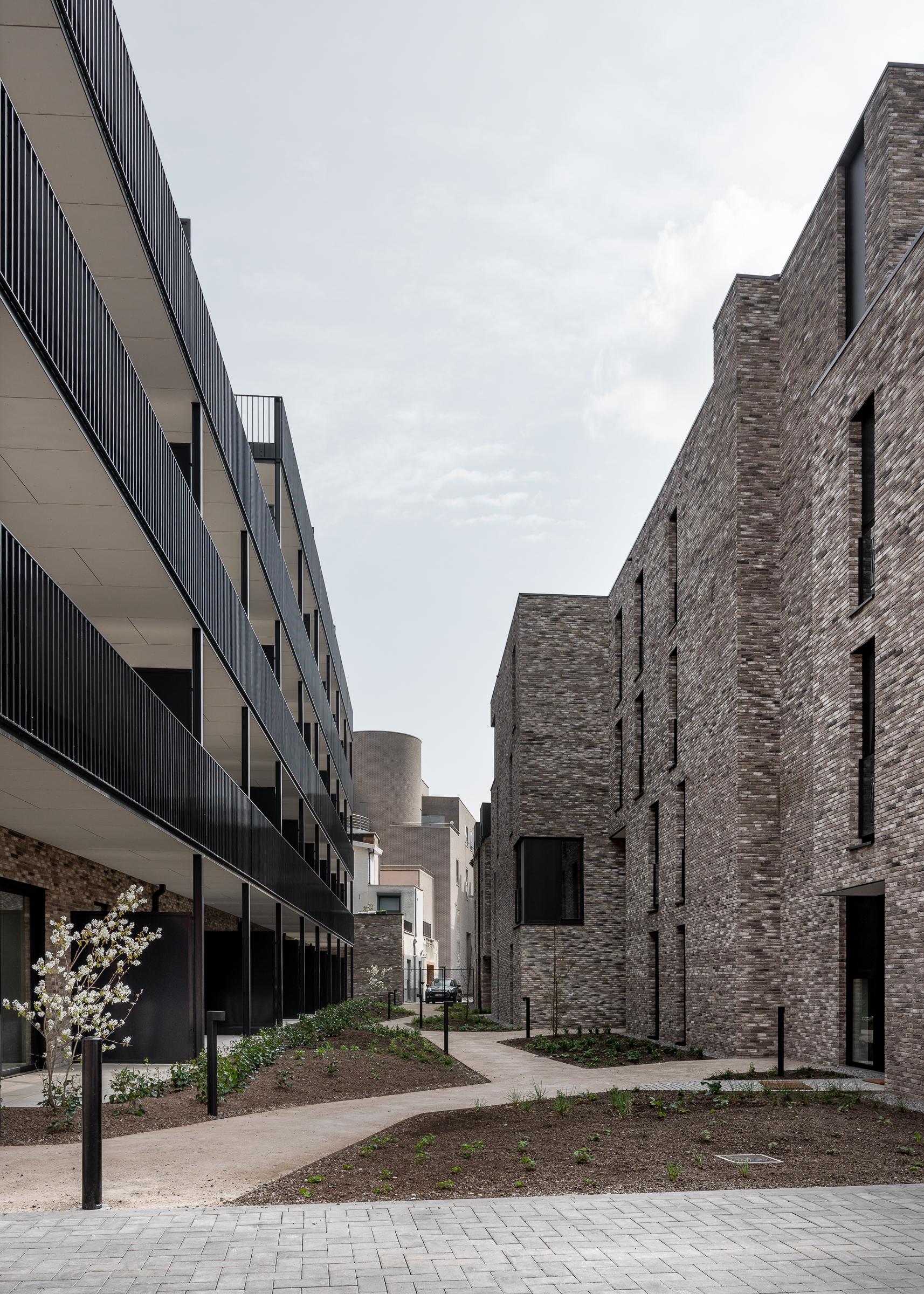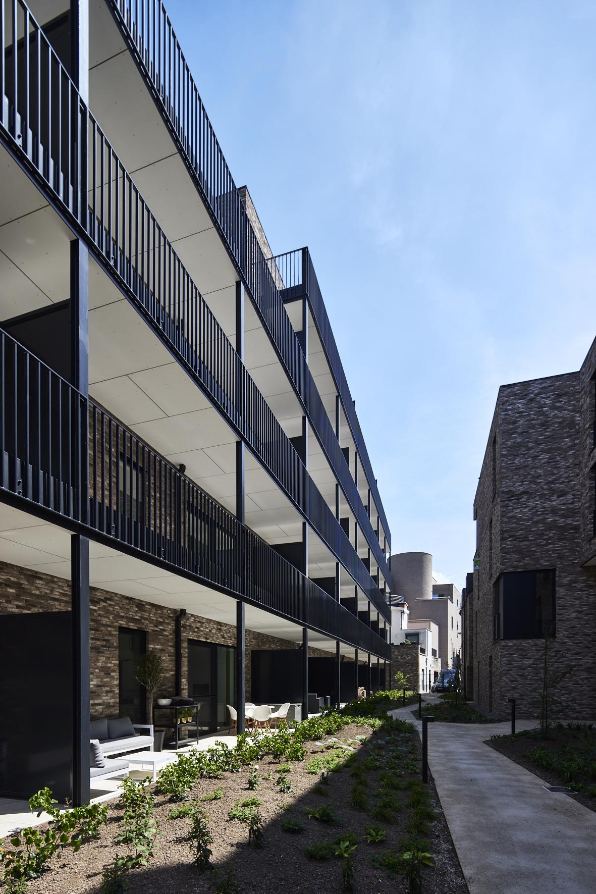 Opvallend is dat de site bijna volledig onderkelderd werd. Op niveau -1 is een ondergrondse parking met 91 autoparkeerplaatsen en 118 fietsstalplaatsen gerealiseerd. De bestaande parkeerkelder van het voormalige kantoorgebouw werd uitgebreid met een nieuw gedeelte om het bovenliggende binnengebied autovrij te kunnen houden.