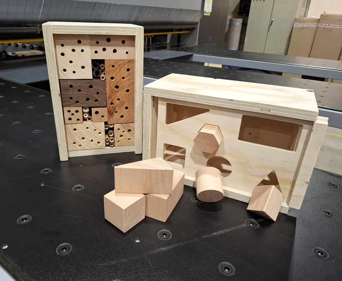 Binnen de Democo Group krijgen kersverse ouders traditioneel een cadeautje voor hun pasgeboren kindje. Deholi introduceert hier nu een duurzaam alternatief: een houten blokkendoos gemaakt van minstens 80% restmateriaal uit het eigen atelier. Elk stuk is uniek, en het materiaal krijgt zo een tweede leven in plaats van weggegooid te worden.