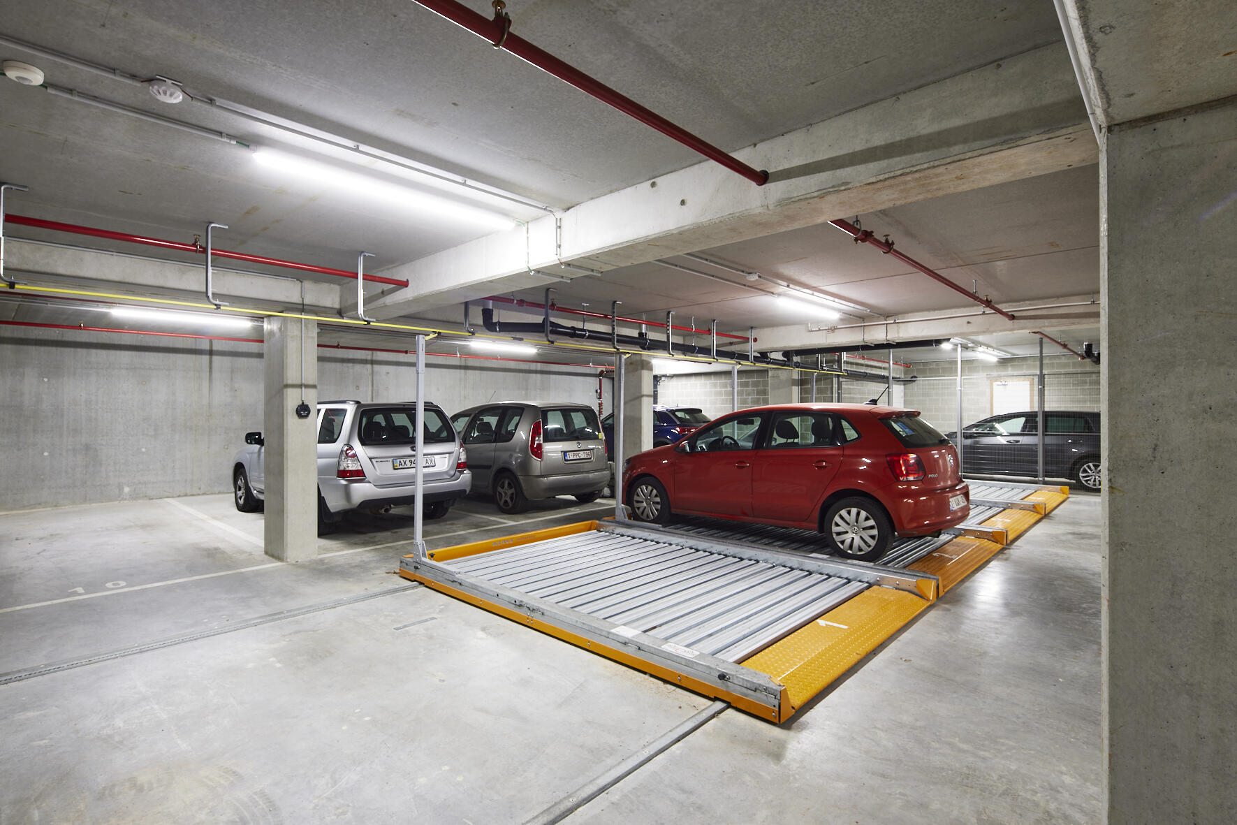 In Auguste werd gekozen voor een slimme ondergrondse parkeeroplossing. Bewoners gebruikten een autolift en schuifplatformen om maximaal gebruik te maken van de beperkte ruimte.
