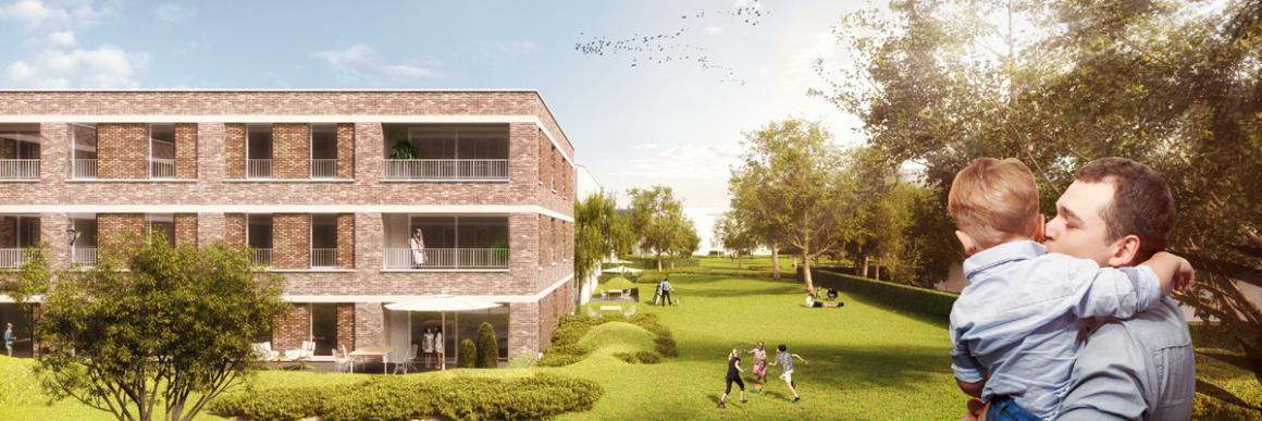 Het Klaverveld heeft zijn naam niet gestolen. Dit unieke woonproject in het hartje van Berchem baadt letterlijk in het groen. De rijke groenaanleg met pleintjes tussen de drie gebouwen sluiten mooi aan op de 1,5 ha grote parkzone van De Veldekens. Dankzij de doordachte inplanting van raampartijen en terrassen genieten de bewoners altijd van uitzicht op het groen.