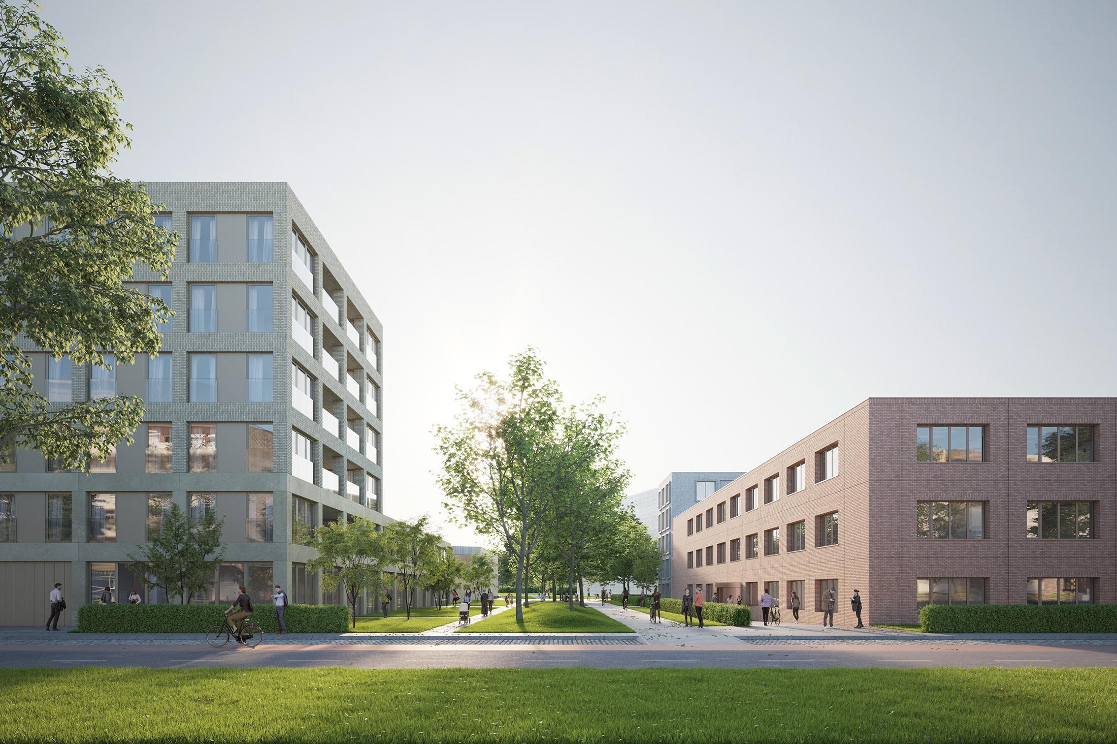 Commissioned by developer Ciril, Democo is building five clusters of buildings with housing, a centre for adult education, commercial spaces and an underground car park around a green, traffic-free square. It is located in the inner area between the new city park, the Mechelsesteenweg and the Edegemsestraat.