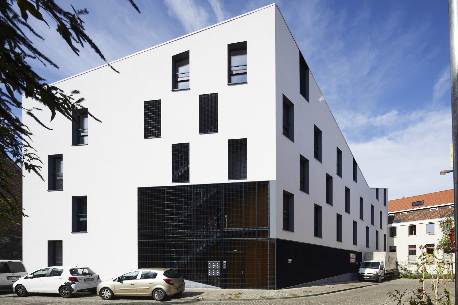 Construction of 17 passive zero-energy apartments with underground car park in the Vandenbranden Street in Brussels (in construction team - Example building 2013).